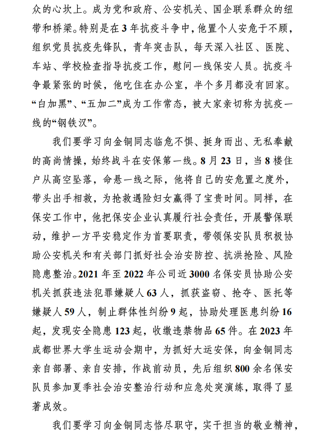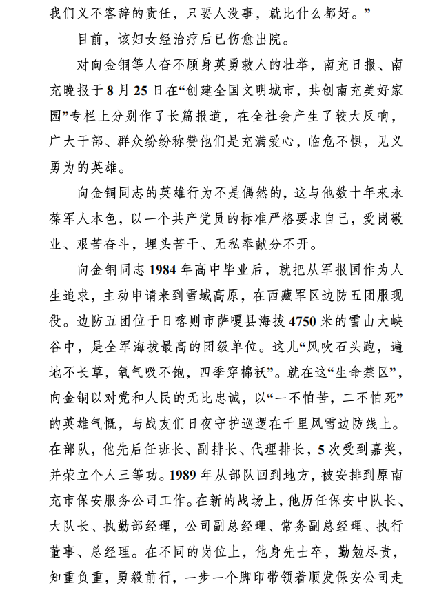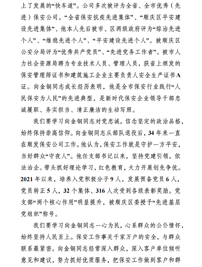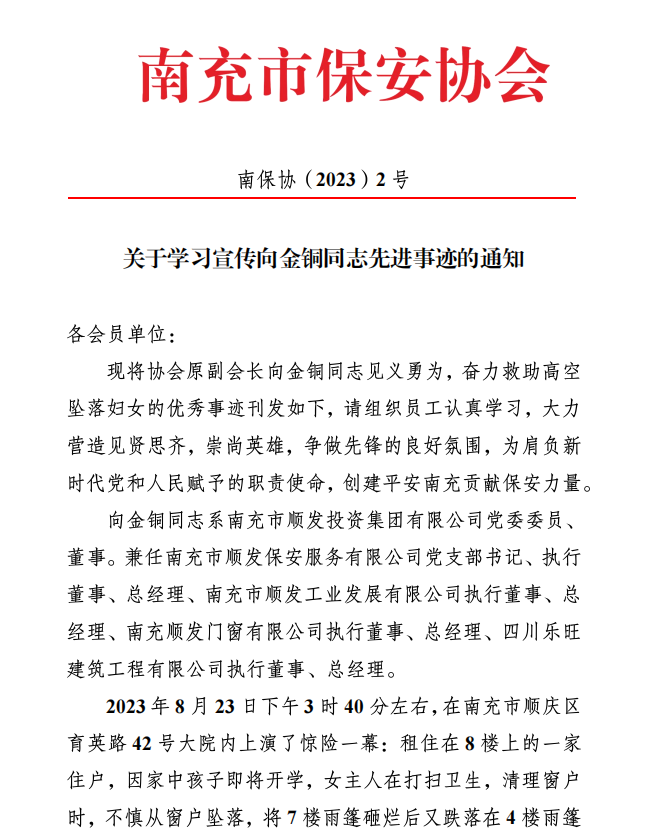 关于学习宣传向金铜同志先进事迹的通知