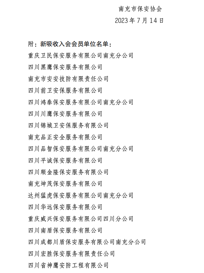 关于吸收23家保安服务企业为保安协会会员单位的通知
