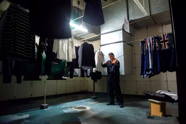 1994年冬天,当时已经23岁的伍洁凡是三门峡市一家药厂的搬运工。自幼受舅舅和父亲的影响,伍洁凡喜欢摆弄一些乐器,至今他还清楚地记得第一次被父亲带到学校初见老式脚踏风琴时的情形。他说:“可能我也是从那时起和音乐结缘的吧。”当时,身在农村的他,接触最多的都是一些民族乐器,二胡便是在那时学会的,《康定情歌》是当时演奏频率最高的曲子。图为深夜,整栋楼显得格外安静。这些衣服变成了他的观众。
